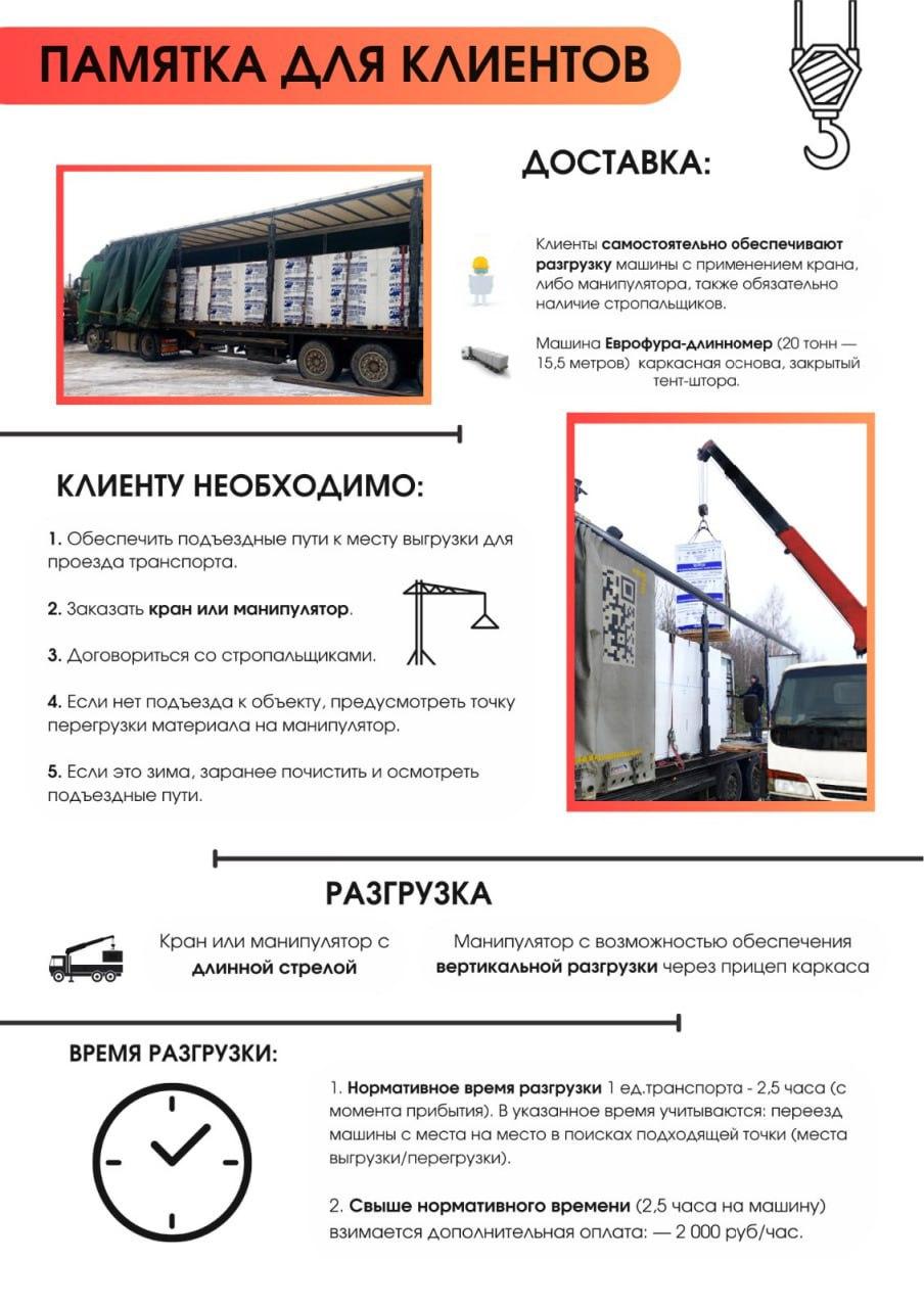 Доставка без опозданий, водитель заранее позвонил. Разгрузили быстро. По качеству блоков вопросов нет